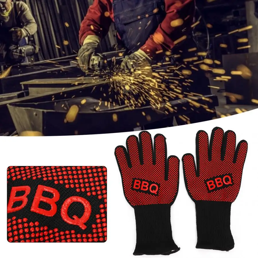 Luvas de fogo resistentes ao calor de 800 graus, retardantes de chamas, antiderrapantes, à prova de fogo, forno de micro-ondas, churrasco, cozimento, proteção para as mãos PM024